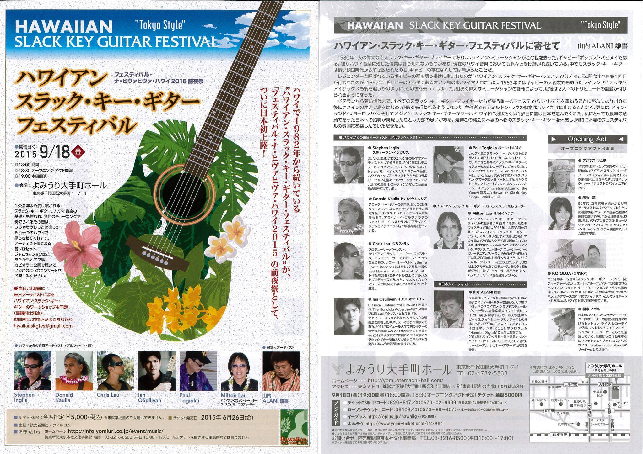 フェスティバル ナ・ヒヴァヒヴァ・ハワイ 2015の前夜祭として「Slack Key Guitar Festival in Japan」が東京・大手町ホールで9月18日(金)開催決定!